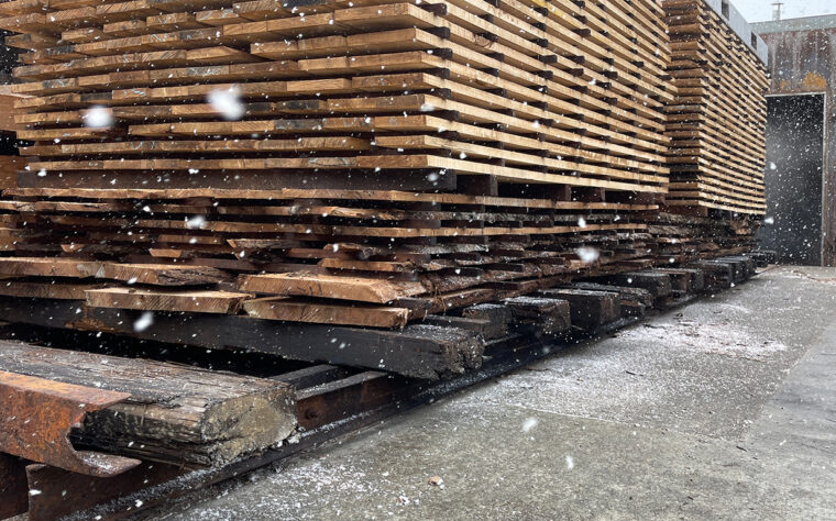 敷地には、100年になろうかという胡桃の大木が立ち並んでいました。この度の住宅新築のために、一部の胡桃を伐採し造作家具に使用します。伐採した胡桃は板状に挽き、前もって乾燥しておきます。なかなか良い木目が出ています。
